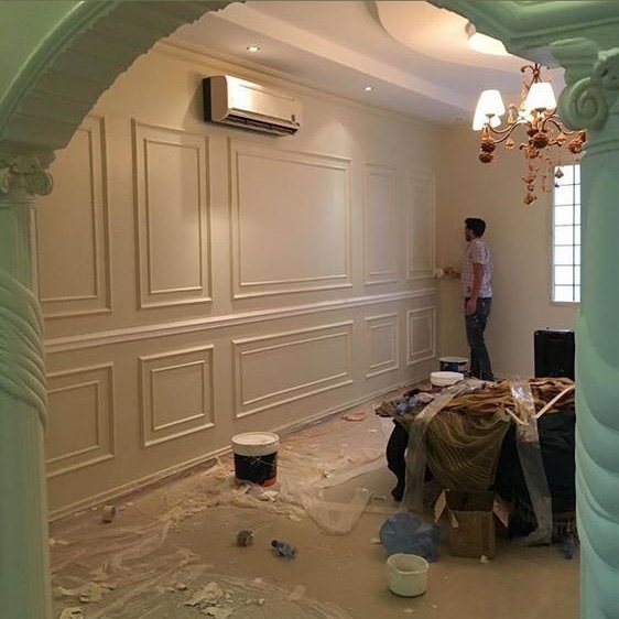 1. ​الدهانات الديكورية: مثل “الخيال”، “الروشن”، والدهانات الرخامية التي تعطي فخامة للمجالس.