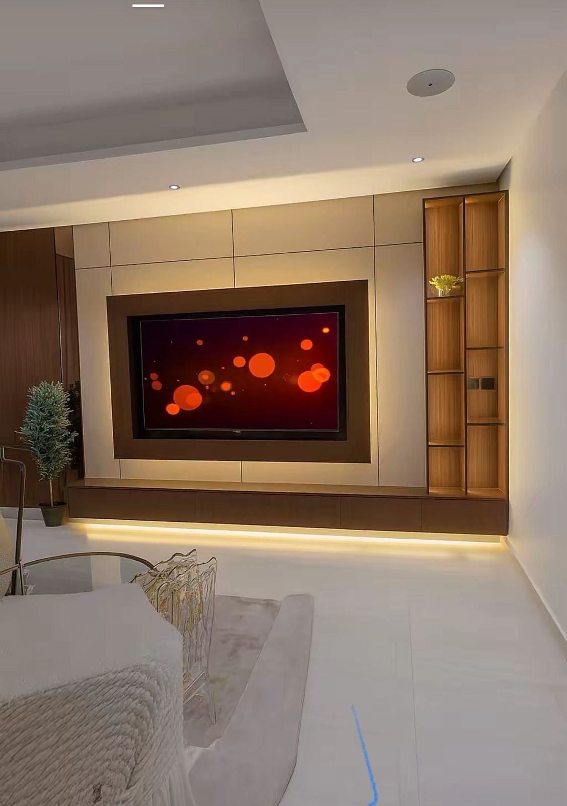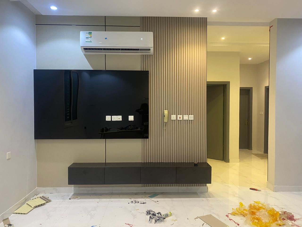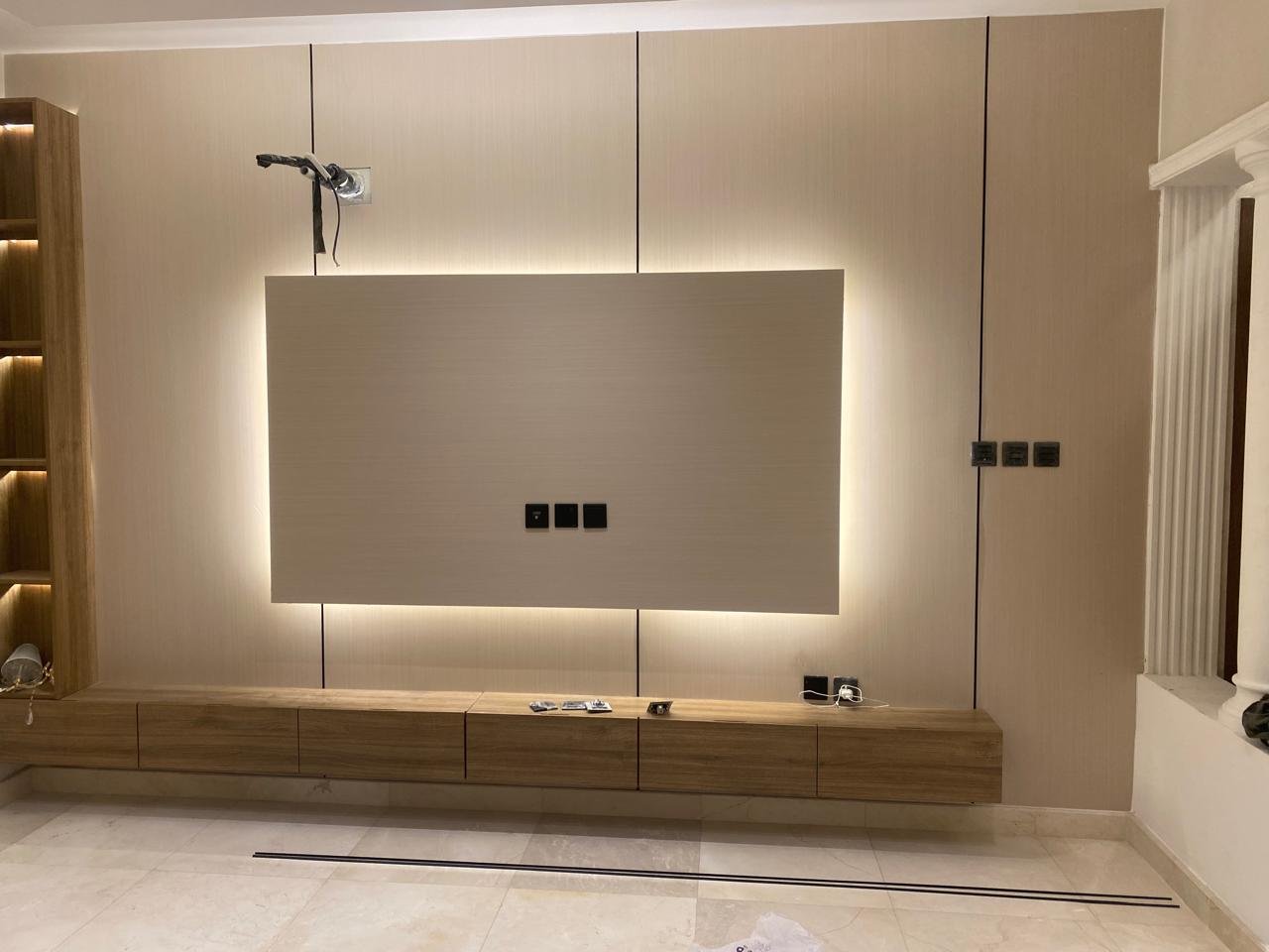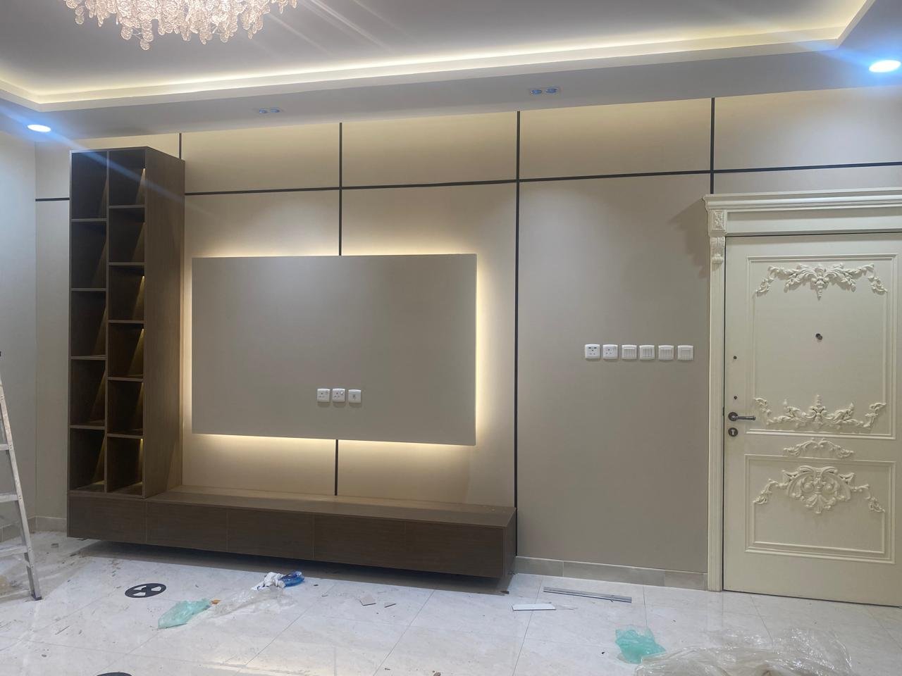 - التأسيس للكهرباء: دمج الإضاءة المخفية (LED) ومفاتيح الكهرباء داخل الألواح بشكل جمالي.